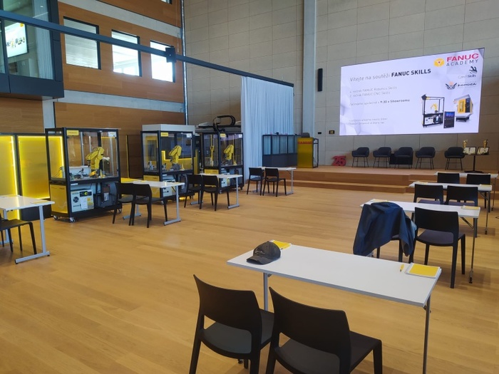 Žáci třídy MZ3A Maksym Kolesnykov a Tomáš Kaleja v doprovodu učitele odborného výcviku Bc. Janečka se zúčastnili projektového dne FANUC Skills v Praze.